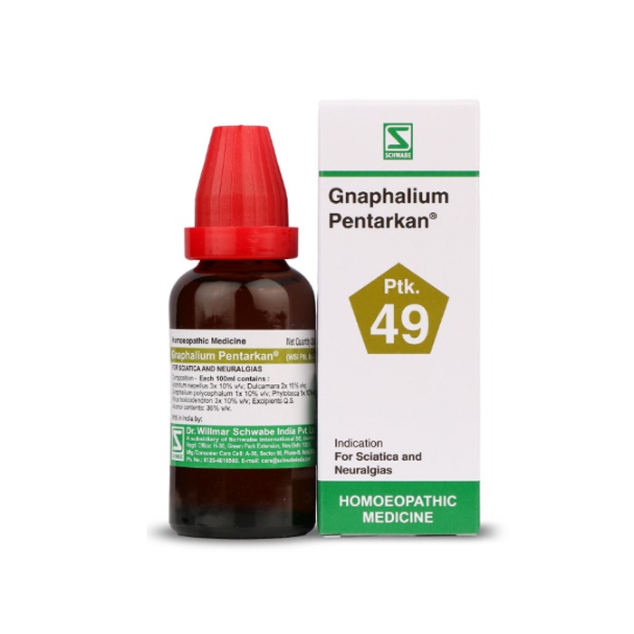 Dr Willmar Schwabe Germany Gnaphalium Pentarkan Ptk. 49 Drop is a meticulously formulated homoeopathic remedy specifically designed to alleviate the symptoms associated with sciatica.