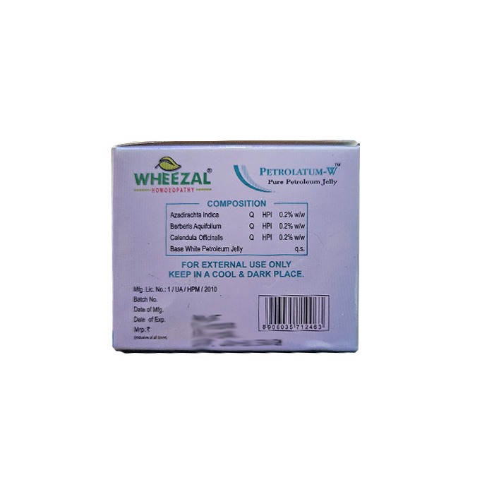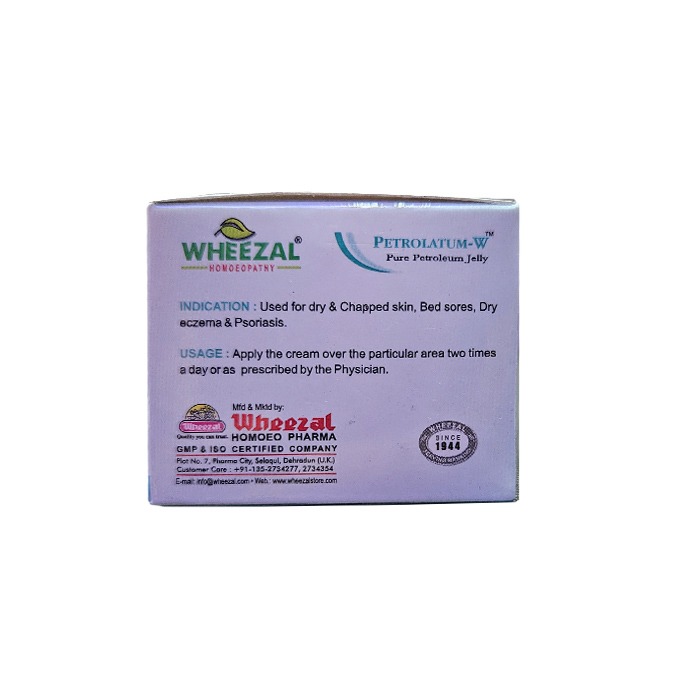 Wheezal Petrolatum-W Pure Petroleum Jelly is effective to reduce dry, chapped, cracked skin, rashes, moisturizes the skin. It helps to reduce chapped skin and lips. Helps to manage dry skin and eczema, healthy, supple, and trouble-free skin